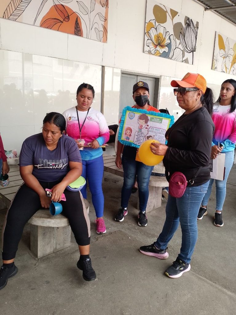 El “Punto Naranja” incluyó entrega de volantes informativos para la prevención, charlas y asesorías legales a la víctima, entrega de violentómetro, entrega de stickers de 0800-MUJER y presentación de los programas de salud del Instituto Regional de la Mujer Mamá Rosa.