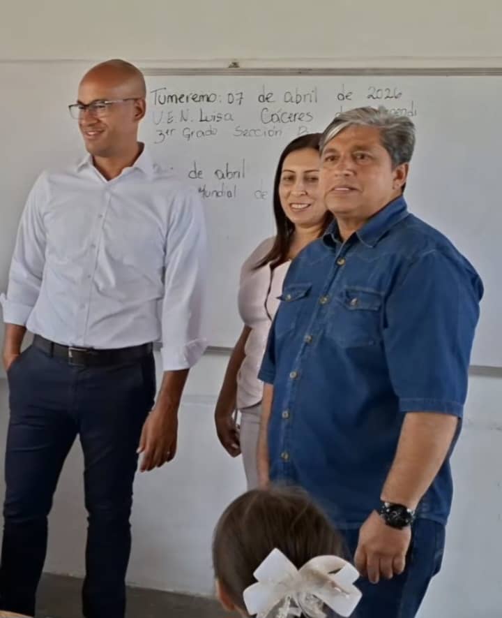 Posteriormente, las autoridades realizaron un recorrido por la U.E.N. Luisa Cáceres de Arismendi, en el sector La Manga. Esta institución fue recientemente reacondicionada de manera integral por la gestión del alcalde Vicente Rojas, como parte de su agenda de atención prioritaria a los planteles educativos del municipio.