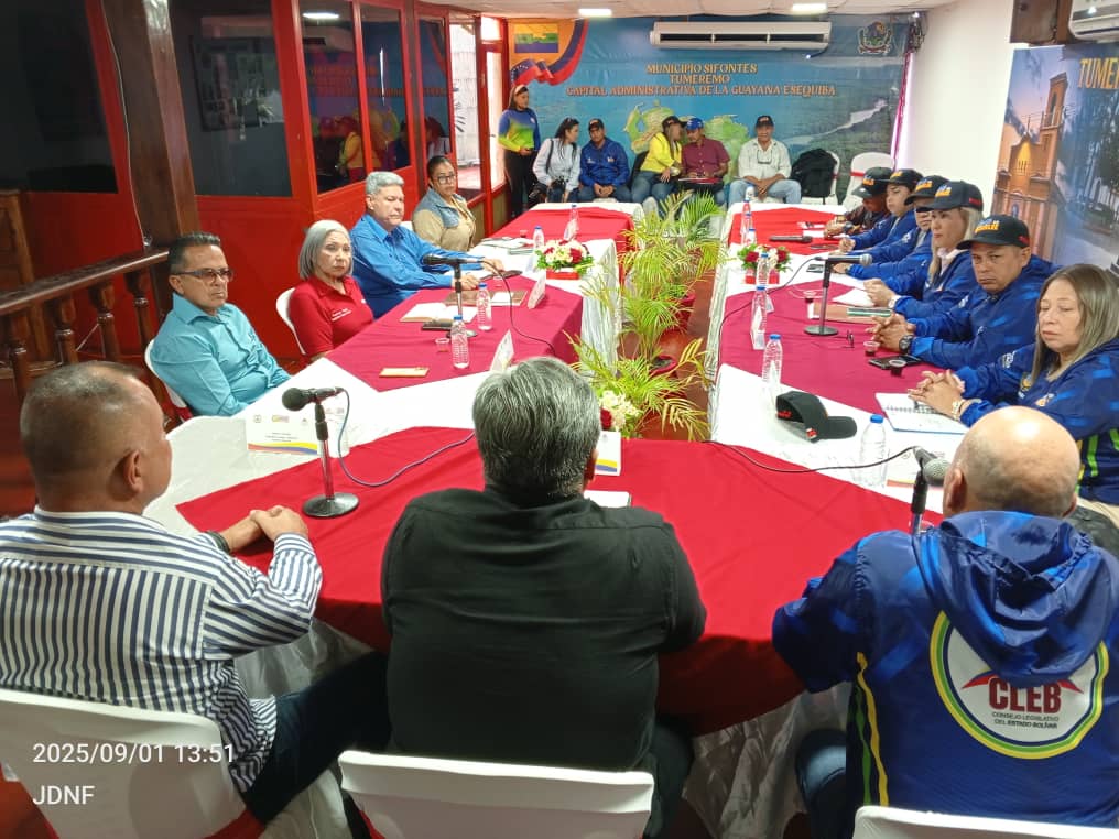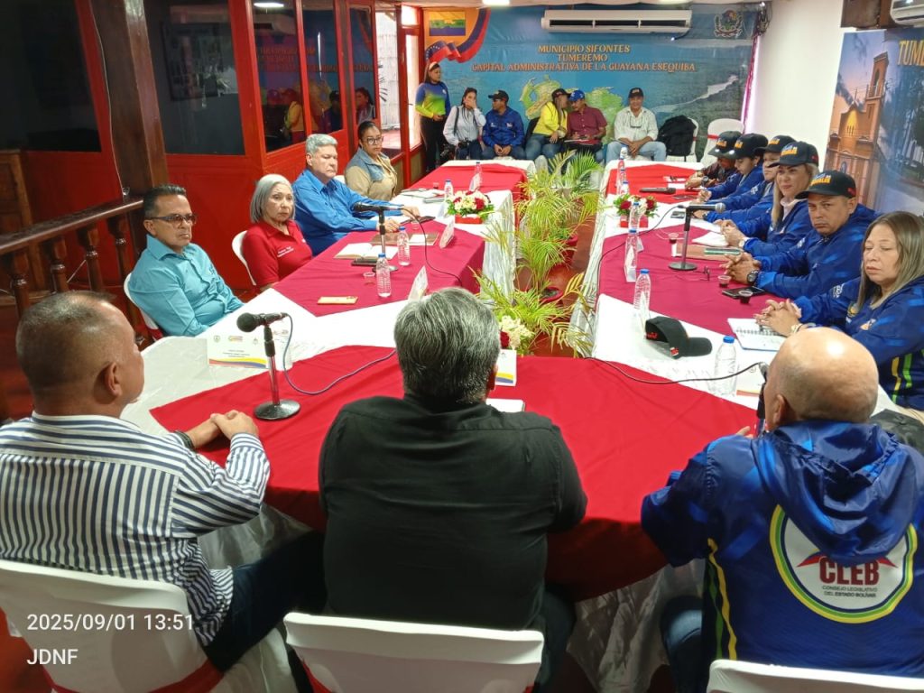 Por su parte, el presidente del Consejo Legislativo del estado Bolívar, Lisbenio Muños, manifestó: «Aquí estamos en este municipio con todo nuestro equipo de parlamentarios en un encuentro con nuestro alcalde Vicente Rojas, junto a hermanos y colegas legisladores y legisladoras del Consejo Legislativo del Estado Guayana Esequiba, para darle un respaldo contundente a nuestro garante de la paz de nuestro país, Nicolás Maduro».
