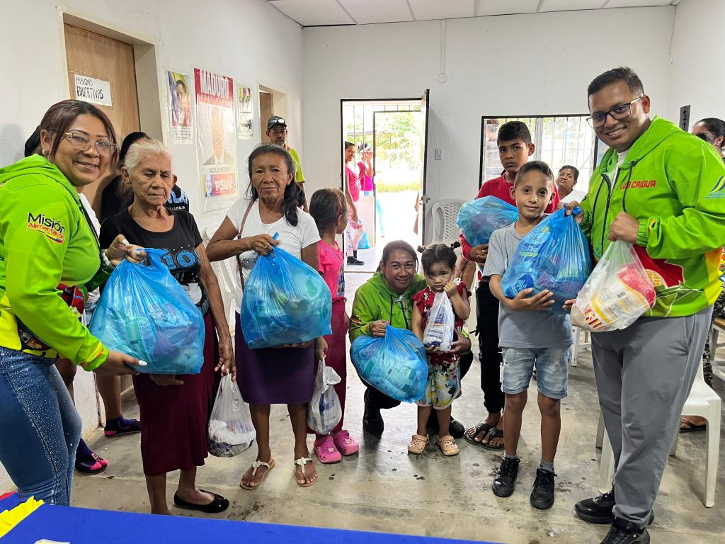 En este sentido, el mandatario municipal, con el apoyo de los representantes del INN Luis Caigua, Mariby Castellano, el concejal indígena José Rebolledo, junto al representante del Ministerio de Alimentación MINPPAL José Ricardo Soto y líderes de comunidad, hizo entrega de manera gratuita de más de 89 bolsas de alimentos consecutivas a estas personas que sí requieren su atención pertenecientes a las bases de Misiones Manuelita Sáenz, sector la Bomba del circuito comunal B.