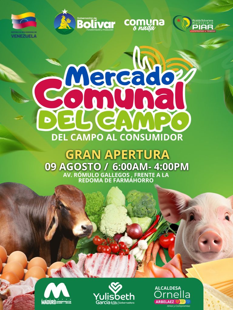 Upata-. Cumpliendo con orientaciones del Presidente Nicolás Maduro y la gobernadora del estado Bolívar, Yulisbeth García, la alcaldesa del municipio Piar, Ornella Arbeláez, inaugurará este sábado 09/08/2025 el mercado comunal, ubicado en la intersección de las avenidas Rómulo Gallegos y Valmore Rodríguez de Upata. En frente a la redoma Rafael Caldera.