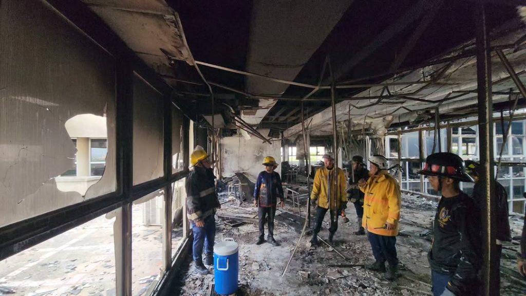 »Realizamos labores de refrescamiento y cesión de las llamas en el cuarto piso, específicamente en el área administrativa. Gracias al apoyo directo de los Bomberos Aeronáuticos, Bomberos Marinos, Protección Civil Municipal y Estadal, logramos controlar y confinar el fuego», detalló el General Navarro.