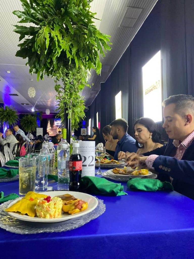 Upata- El pasado sábado 29 de noviembre la gran familia de la Cámara de Comercio e Industrias del municipio Piar a cargo de su presidente Miguel Rojas, y demás miembros Miker Morillo, Leonardo González y Noel Haro, se vistieron de gala y celebraron con éxito la Cena Navideña Empresarial 2025, quien tras varios años de pausa reunió a mas de 230 personas en un ambiente de compañerismo, destacando el liderazgo de cada empresario, celebrando los logros, cerrando el año con energía y fortaleciendo los lazos empresariales del municipio.