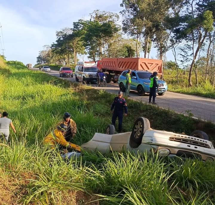 Al menos una persona resultó lesionada tras un vuelco vehícular ocurrido en la mañana de este viernes en la Troncal 10, a la altura de la entrada Comin Roscio, en Guasipati.