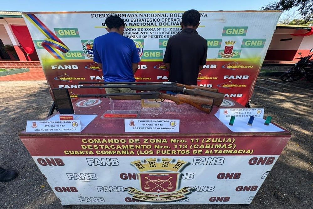 Durante el operativo, destacó Hernández Lárez, fueron aprehendidos Rubén David Cuauro Akles y Juan De Eudes Cuauro Miquelena, quienes se encontraban deambulando armados por la zona. Ambos fueron puestos bajo custodia por porte ilícito de armas de fuego.