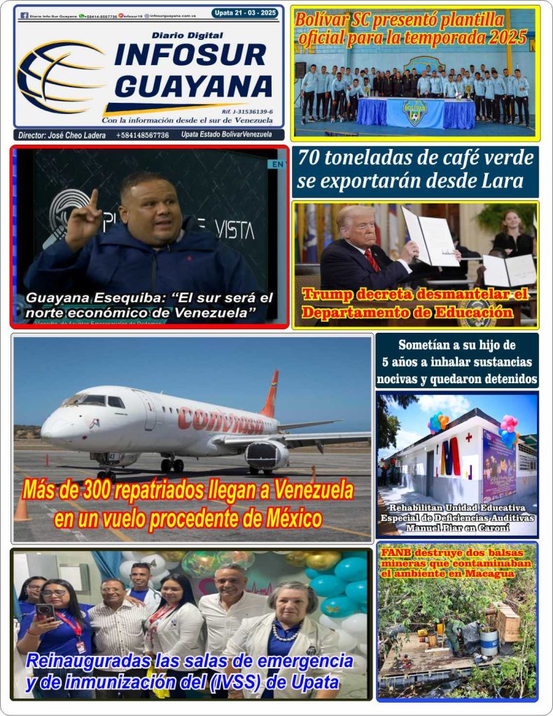 EDICION DIGITAL Edición Digital del Diario InfoSur Guayana correspondiente al día 21/03/2025, descarga nuestra edición en PDF (NOTA:) El único número de nuestro Diario es +584148567736 Grupo WhatsApp INFOSUR 21/03/2025 0 Portada InfoSur DIARIO DIGITAL INFOSUR GUAYANA 2025Descarga Post navigation Previous: Upata: Hombre de 47 años es señalado por abusar de una menor de 11 añosNext: Alcaldía de Sifontes y la Misión Barrio Adentro realizaron operativo oftalmológico en el CDI de Tumeremo. Más historias EDICION DIGITAL *Portada del Diario Digital InfoSur Guayana del día Sábado 18 – 04 – 2026* *Descarga nuestra edición en PDF* INFOSUR 18/04/2026 0 EDICION DIGITAL *Portada del Diario Digital InfoSur Guayana del día Viernes 17 – 04 – 2026* *Descarga nuestra edición en PDF* INFOSUR 17/04/2026 0 EDICION DIGITAL *Portada del Diario Digital InfoSur Guayana del día Jueves 16 – 04 – 2026* *Descarga nuestra edición en PDF* INFOSUR 15/04/2026 0 Deja un comentario Cancelar la respuestaLo siento, debes estar conectado para publicar un comentario.