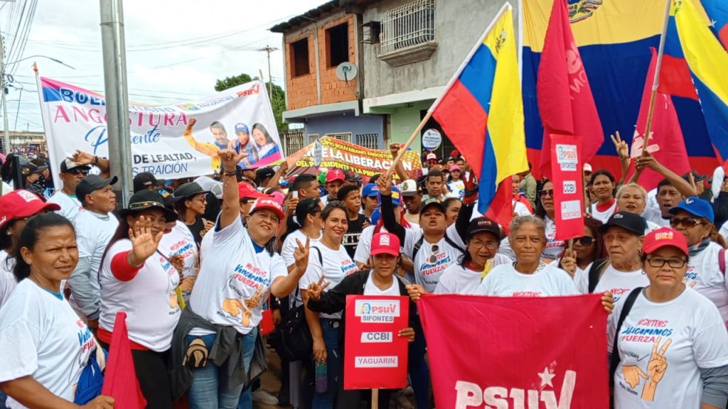 Tras una nutrida concentración realizada este sábado 10 de enero en la avenida 3 del sector Barrio Guayana de Puerto Ordaz, estado Bolívar, se reunieron los principales movimientos sociales y el poder popular organizado de diferentes municipios para exigir a Estados Unidos la liberación inmediata del presidente Nicolás Maduro y su esposa Cilia Flores de Maduro.