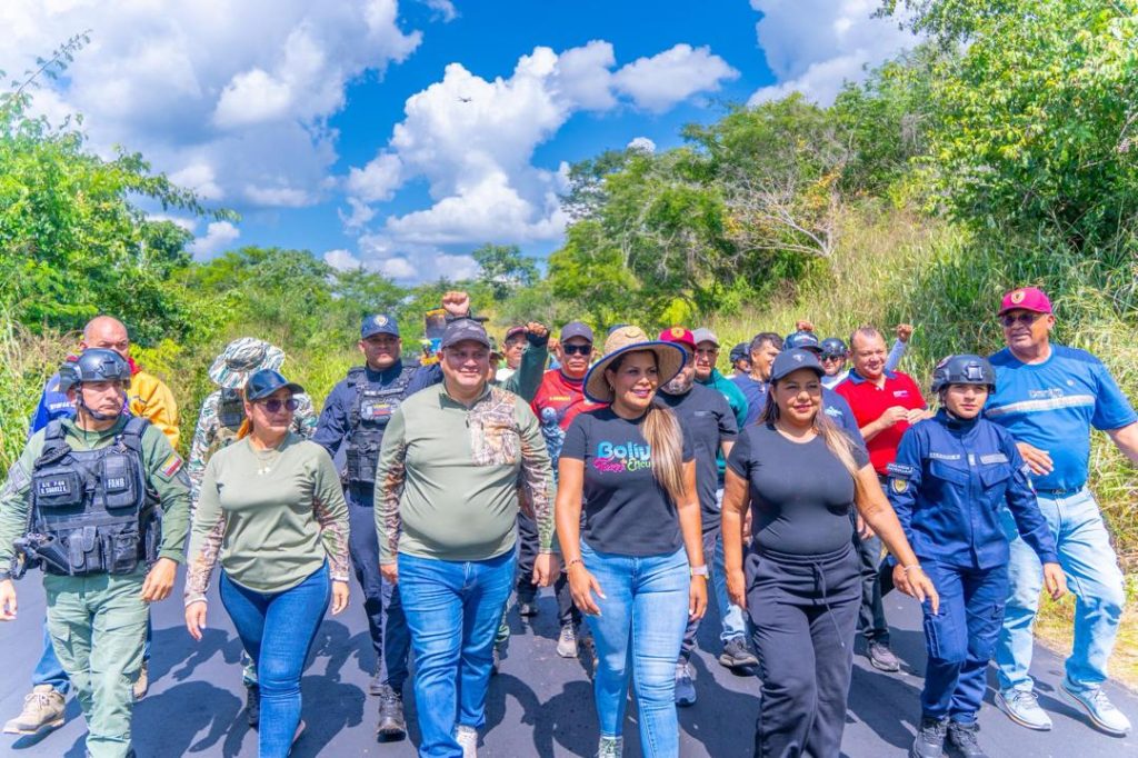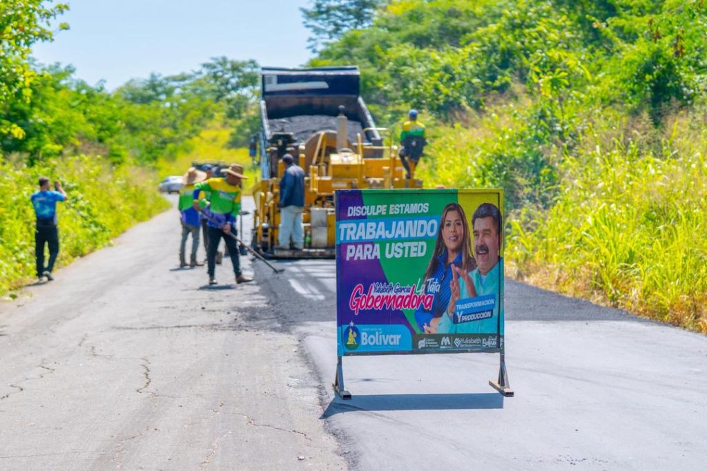 Acompañada por la alcaldesa Ornella Arbeláez, del municipio Piar, y David Ramos de Padre Pedro Chien, la gobernadora Yulisbeth García inspeccionó la acometida en esta carretera nacional donde se han empleado hasta la fecha 5.393 toneladas de asfalto.