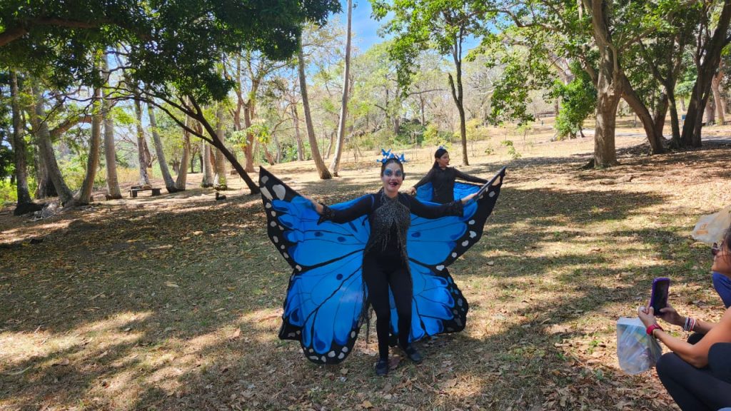 Desde el encuentro dialéctico entre Walter Raleigh y Antonio de Berrío en su incansable búsqueda de «El Dorado», hasta las representaciones de mujeres indígenas realizando labores domésticas en los morteros originales, con el río Caroní de fondo, y las icónicas mariposas azules.