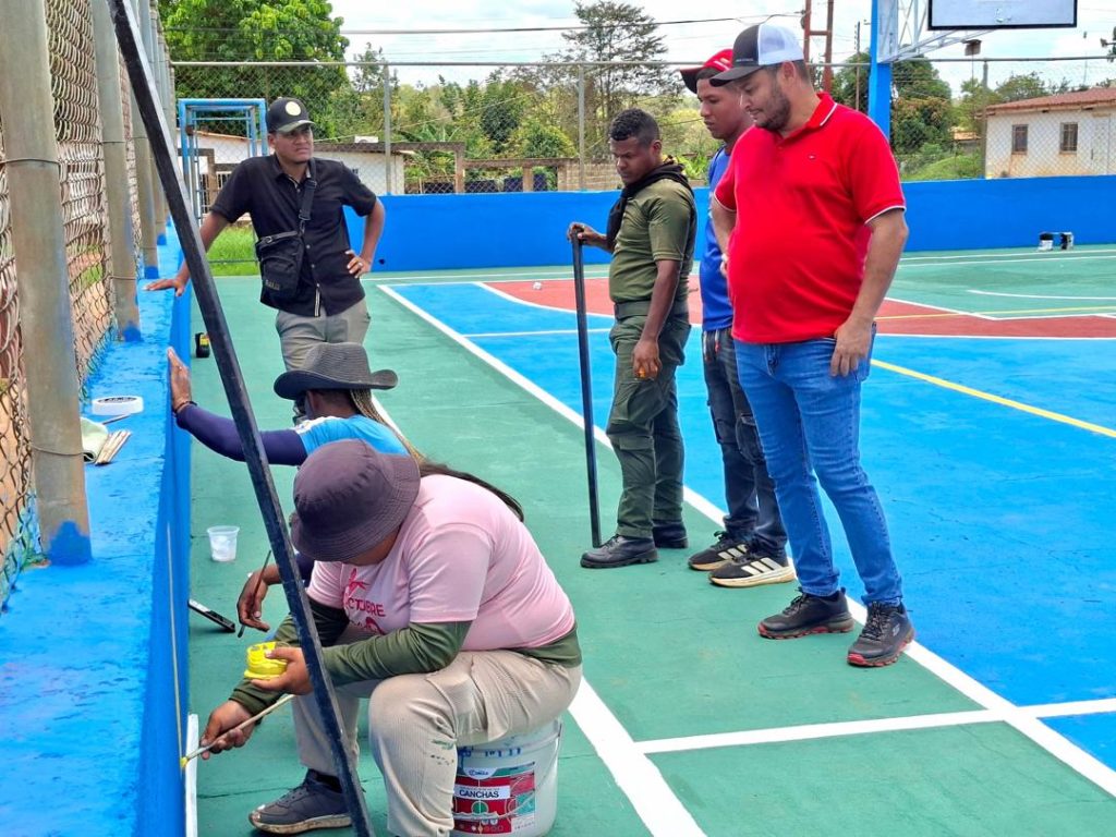 La líder regional orientó a su enlace político, Doarwin Evans, a un inspección de los trabajos que se realizan en la cancha deportiva del sector Nueva California. En compañía de funcionarios de la Guardia del Pueblo, Ministerio de la Juventud, Ministerio de Relaciones Interiores, Justicia y Paz y equipos de la Gran Misión Venezuela Joven, llevaron a cabo un recorrido por las áreas donde se ejecutan labores de mejoras y embellecimiento.