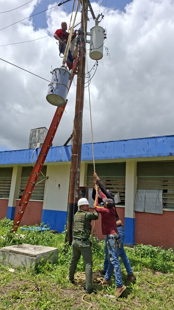 Las labores de instalación contaron con un equipo multidisciplinario integrado por cuadrillas de Corpoelec y el apoyo logístico de un camión tipo grúa de la empresa Hidrobolívar, logrando el restablecimiento total del sistema eléctrico en tiempo récord para garantizar la operatividad hospitalaria.