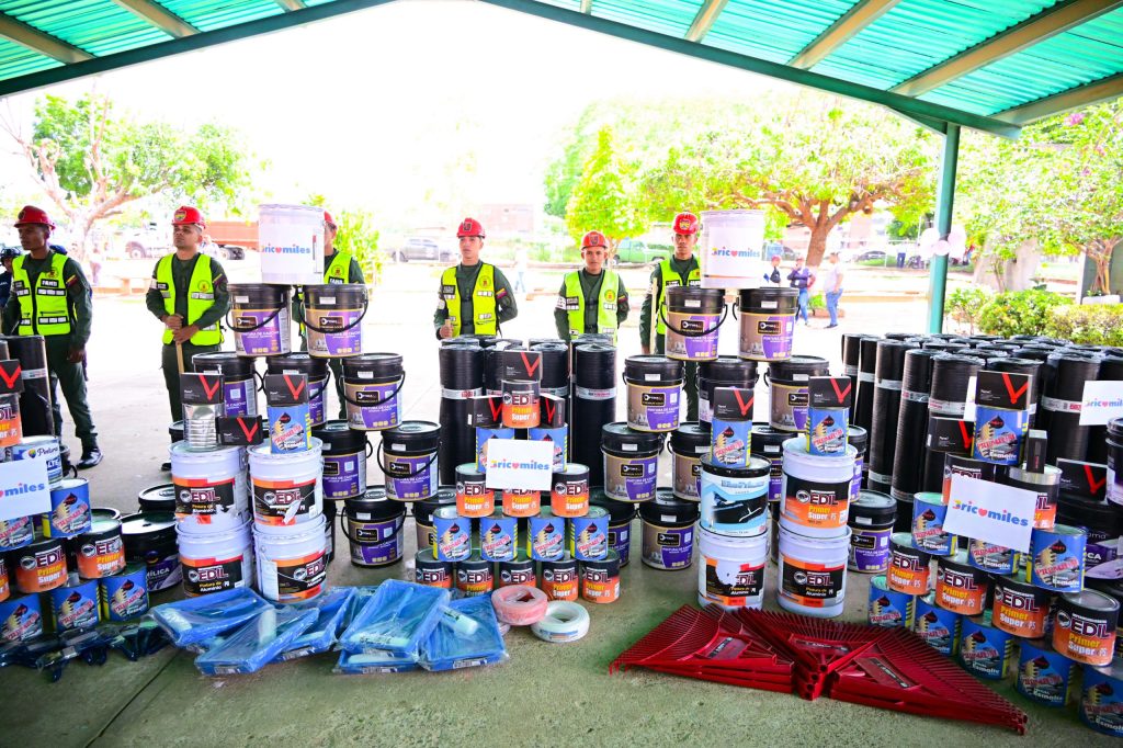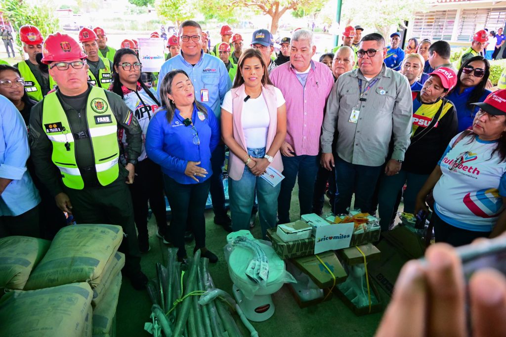 Desde la Escuela Básica Estadal La Paragua, la gobernadora García, el ministro Eduardo Piñate, el alcalde Sergio Hernández y el equipo del Ministerio del Poder Popular de Obras Públicas, supervisaron la distribución de los materiales, que permitirán la rehabilitación y mejoras de las instalaciones.