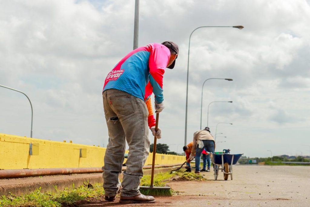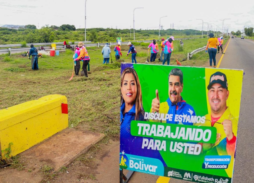 Equipos de la Secretaría de Mantenimiento y Servicios Generales se desplegaron en cuadrillas, en la vía que conecta al peaje de Ciudad Guayanacon el portón 4 de la Siderúrgica del Orinoco (Sidor); abarcando un tramo de entre 8 y 10 kilómetros.