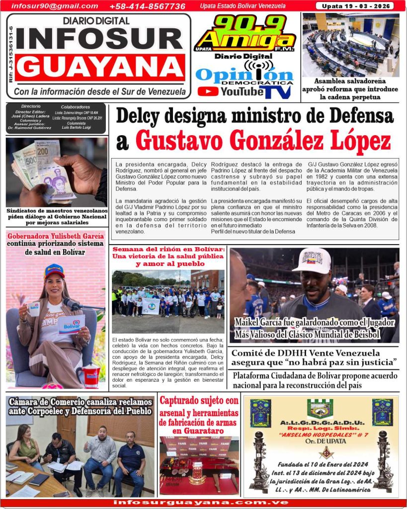 *Portada del Diario Digital InfoSur Guayana del día Jueves 19 – 03 – 2026* *Descarga nuestra edición en PDF*