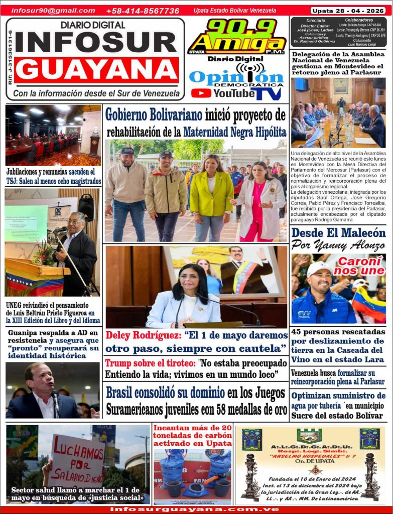 EDICION DIGITAL *Portada del Diario Digital InfoSur Guayana del día Martes 28 – 04 – 2026* *Descarga nuestra edición en PDF* INFOSUR 27/04/2026 0 Portada EDICION DIGITALDescarga Post navigation Previous: Docentes estatales de Bolívar denuncian «descuentos arbitrarios» en sus cuentas nómina Más historias EDICION DIGITAL *Portada del Diario Digital InfoSur Guayana del día Lunes 27 – 04 – 2026* *Descarga nuestra edición en PDF* INFOSUR 26/04/2026 0 EDICION DIGITAL *Portada del Diario Digital InfoSur Guayana del día Sábado 25 – 04 – 2026* *Descarga nuestra edición en PDF* INFOSUR 24/04/2026 0 EDICION DIGITAL *Portada del Diario Digital InfoSur Guayana del día Viernes 24 – 04 – 2026* *Descarga nuestra edición en PDF* INFOSUR 23/04/2026 0 Deja un comentario Cancelar la respuestaLo siento, debes estar conectado para publicar un comentario.
