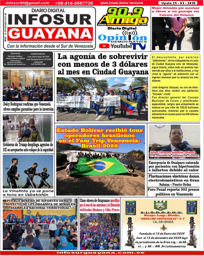 *Portada del Diario Digital InfoSur Guayana del día Miércoles  25 – 03 – 2026* *Descarga nuestra edición en PDF*