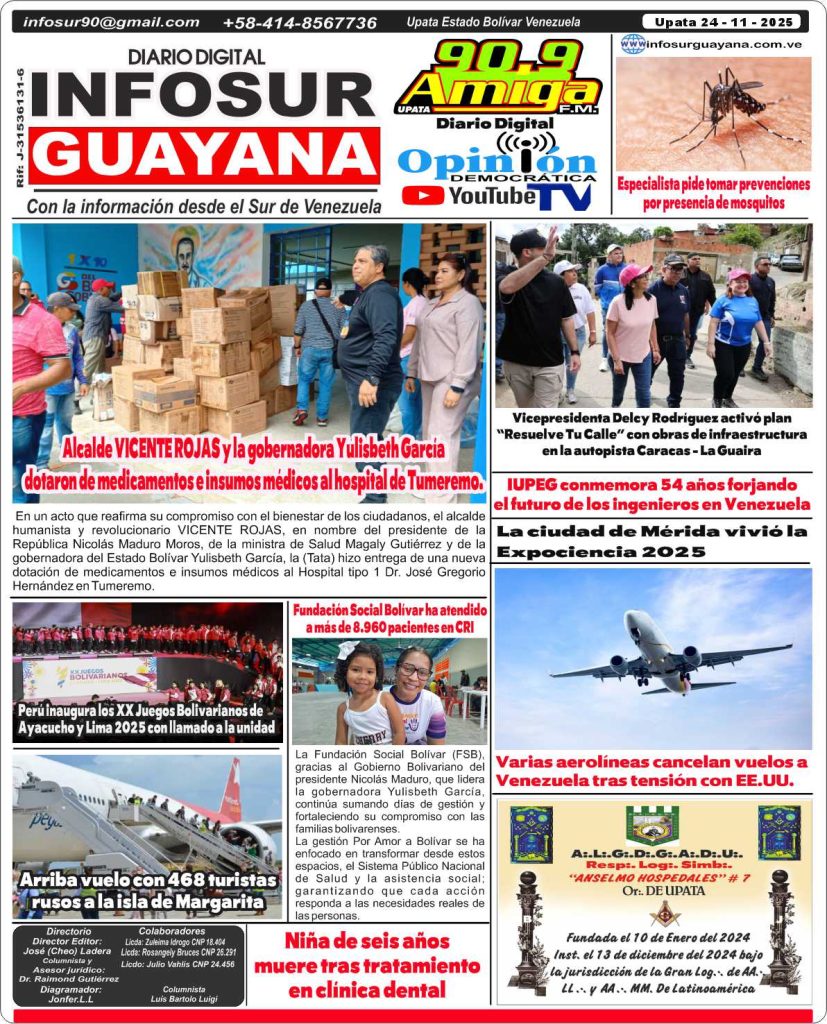 *Portada del Diario InfoSur Guayana correspondiente del día 24 – 11 – 2025 descarga la edición en el siguiente link*