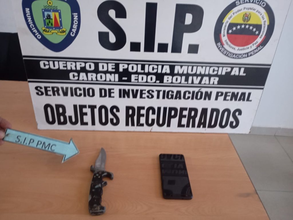 Además del celular también incautaron el cuchillo con el que el detenido habría sometido a la víctima.