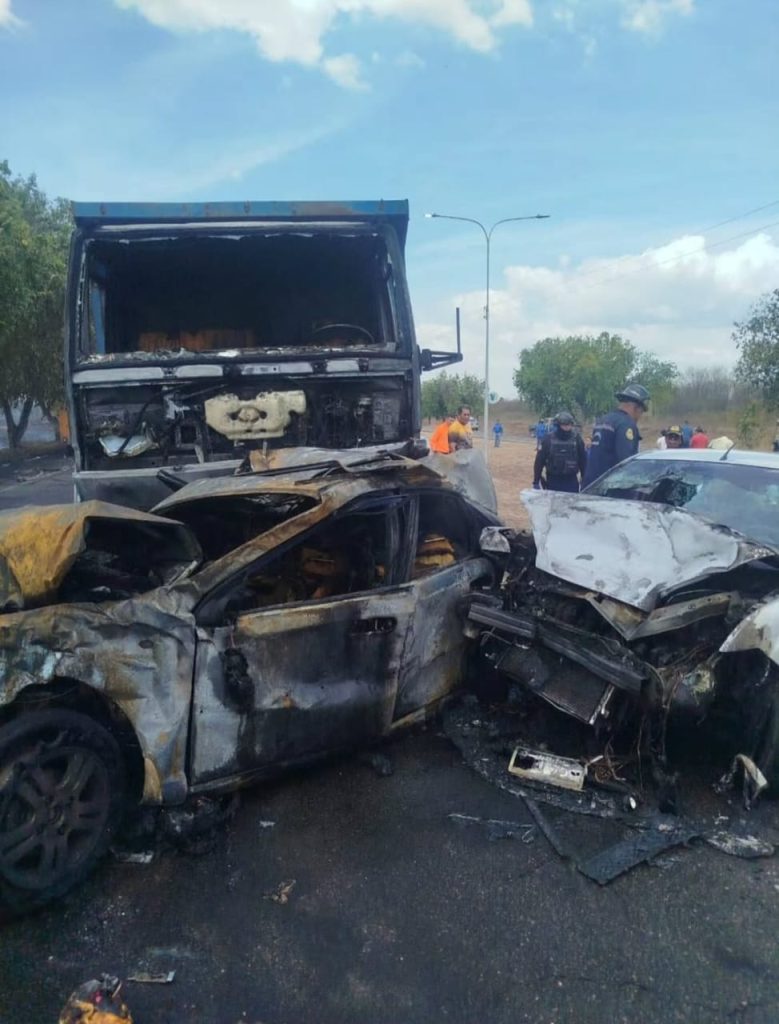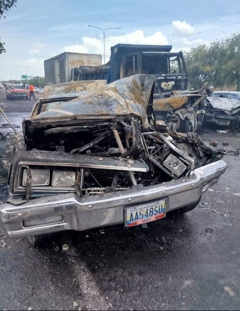 Asimismo, reseñaron que 11 vehículos estuvieron involucrados en el siniestro, de los cuales al menos dos quedaron totalmente calcinados; se trata de un Chevrolet Impala, placa AA5448SU, en el que se desplazaba el fallecido, y un Chevrolet Optra, sin placa visible.
